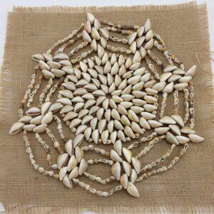 Piece is Vintage, Handmade and Used. Some Shells Have Damage and Marks, Scratches. Several Cowrie Shells Have Chunks Taken Out of Them. Do Not Know if This is From Production or Use.