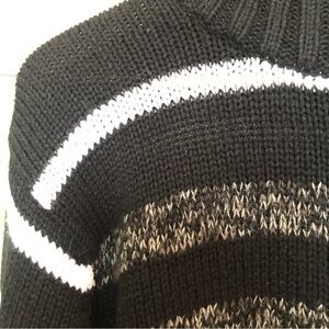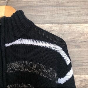 Vintage Cozy Quarterzip Striped Turtleneck Chunky Knit Sweater Large