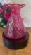 Vintage Cranberry Glass Vase Ruffled Edge Diamond Optic Mid Century Art Glass