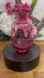 Hand-blown cranberry glass is highly collectible, with its deep hue achieved using gold in the glassmaking process. The ruffled rim and thumbprint pattern add texture and light-catching detail, making it perfect for display or vintage collections.