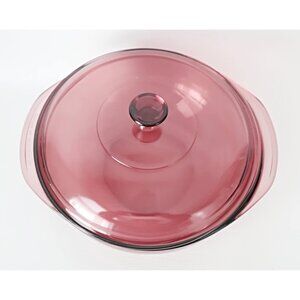For your consideration is a vintage is a vintage cranberry Pyrex covered casserole with lid.
