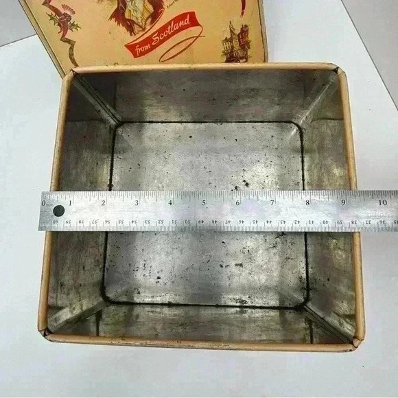 Vintage Crawford biscuits Scottish Heros tin featuring Robert Burns. This is a gorgeous shabby chic piece that would look amazing as part of a themed collection. Featuring various scenes from the life of Robert Burns. The paint is mainly intact, with wear on the corners and edges. The tin is very sturdy and quite usable. It’s a nice big size at 9 x 8.5 x 5” deep