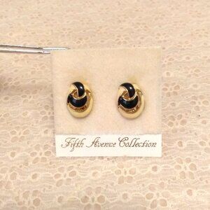 Vintage Cream Blue Enamel Gold Tone Art Deco Oval Earrings Non-Pierced Clip Earrings Timeless VTG Jewelry