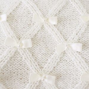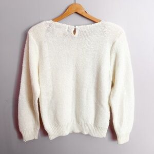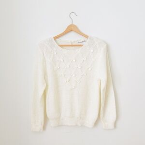 Vintage Cream Cable Knit Sweater with Bows and Pearls Size Large Coquette Girly