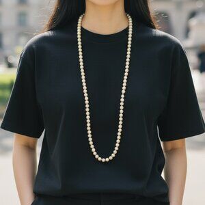 Vintage Cream Coloured Faux Pearls Necklace Long