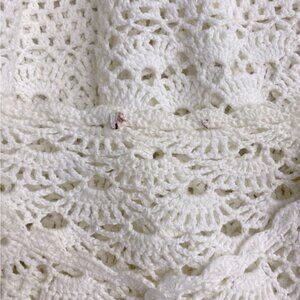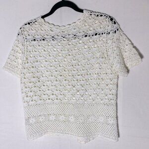Vintage Cream Crochet Lace Knit Button Front Short Sleeve Cardigan M