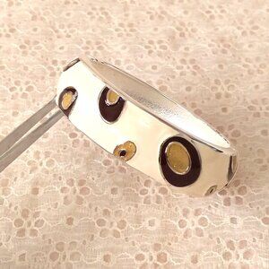 Vintage Cream Enameled Silver Plated Bangle Spring Hinge Metal Cuff