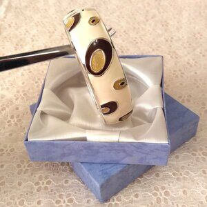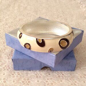 Vintage Cream Enameled Silver Plated Bangle Spring Hinge Metal Cuff Women's Jewelry Gifts