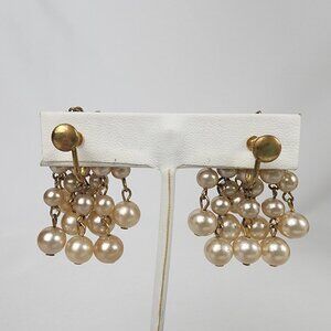 Vintage Cream Faux Pearl Cluster Beaded Earrings