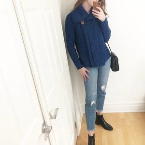 Chic and warm knit cardigan. Features intricate patterns and a stylish button detail. Perfect for layering.