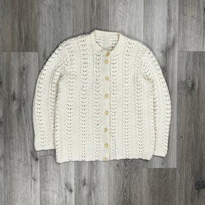 Vintage Cream Knitted Wool Button Up Women's Sweater