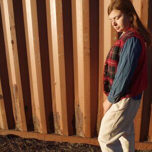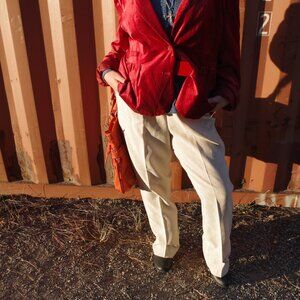 Vintage cream trousers by Allison Daley .,Size ten ,made out of 100% polyester .In great condition ,made in The Jordan .Has pockets ,elastic back .Inseam is 30 inches long. Waist is 30 inches .