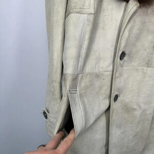 Vintage Cream Suede Fur 1970s Winter Coat Large