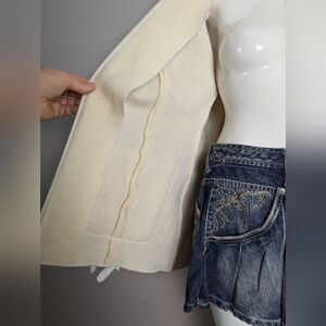 Timeless and minimalist, this vintage cream jacket features a clean silhouette with a collar, side pockets, and raw overlocked edges for a modern touch. Made from a warm and durable 80% wool / 20% polyester blend. Size 10 and perfect for layering in cooler weather.