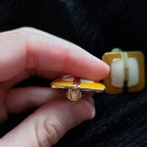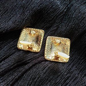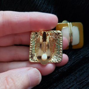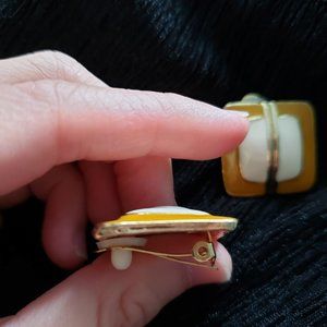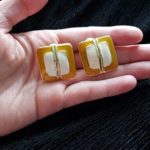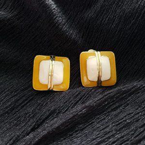 Vintage Cream and Yellow Enamel Square Clip On Earrings