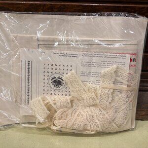Kit includes all four designs silk-screened on cotton muslin, Candlewicking thread, lace, satin ribbon, needle and instructions.