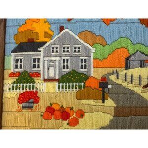 Vintage Creative Circle Long Stitch Country Fall Pumpkin Patch Framed Finished