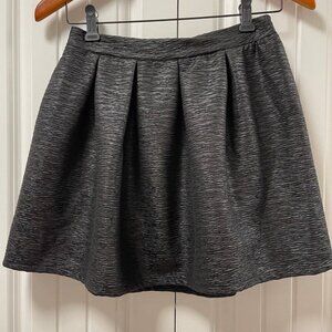 Chic and versatile vintage mini skirt with a subtly textured finish and structured A-line silhouette. Features soft pleats for added volume and a flattering high-waisted fit. Fully lined for comfort, with a hidden side zipper and partial elastic waistband for ease of wear.