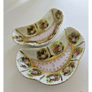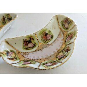 Vintage Crescent Shaped Pair of Victorian Style Side Dishes(Courting Couple)