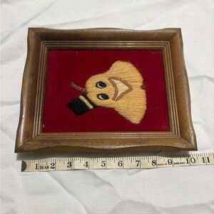 Vintage Crewel Framed Embroidered Pear Art with Top Hat