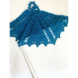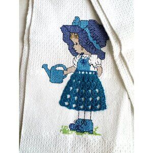 Vintage Crochet Detail Tea Towels Girl and Boy Motif Set of 2.