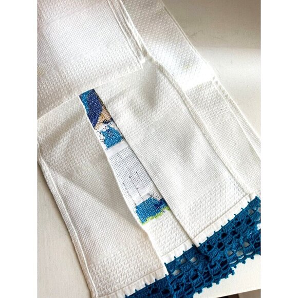 Vintage Crochet Detail Tea Towels Girl and Boy Motif Set of 2.