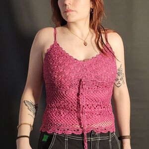 Vintage Crochet Lace Detailed Tank Top in Cream Made in USA