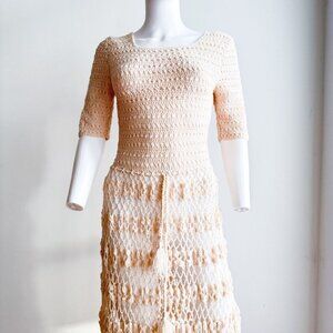 Vintage Crochet open Knit Ivory Cream Maxi Dress w Back Button Closure S