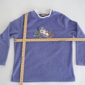 Vintage Croft & Barrow Lavender Embroidered Snowman Fleece Crewneck Sweater L