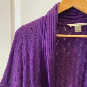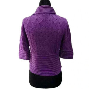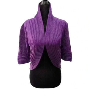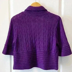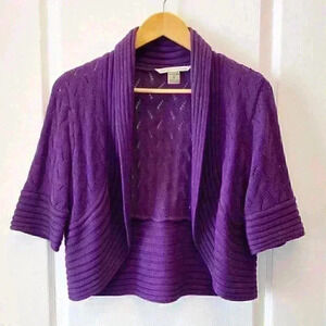 Vintage Cropped Bolero Cardigan Shrug Purple Pointelle Lace Knit Medium Petite