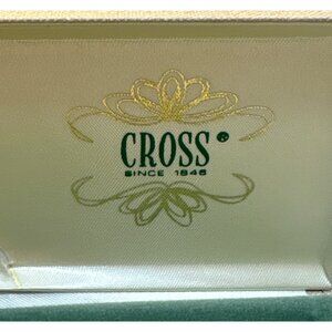 Elegant gold-tone Cross pen storage box featuring a durable hinged design and green velvet lining. Suitable for standard-sized Cross pens.