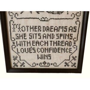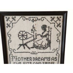 Vintage Cross Stitch Sampler Early 1900s "Mother's Dream" Poem Spinning Wheel