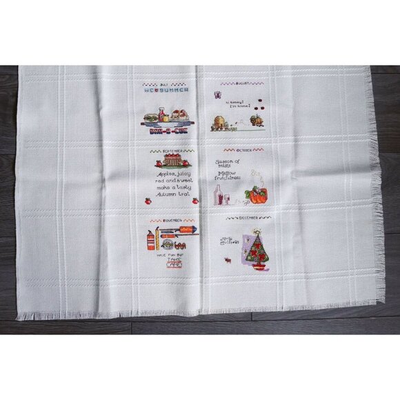 Vintage Cross Stitch Table Topper Months of the Year Hand Made T2