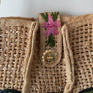 Vintage Crossbody Bag Woven Wicker Straw Floral Boho Brown 11x13