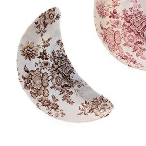 Vintage Crown Devon Staffordshire England Crescent Dishes Brown Red Floral China