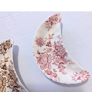Lovely vintage crescent-shaped dishes by Crown Devon! This dishes have a floral design in brown and red and they are in great condition with no chips or cracks!