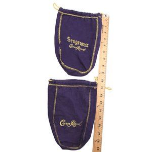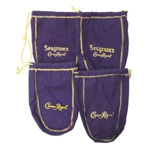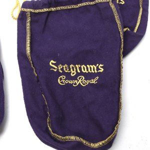 Vintage Crown Royal Seagram's Fabric Bags Felt Drawstring Purple Yellow Soft x 4