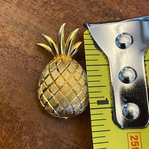 Vintage CROWN TRIFARI, signed, pineapple gold tone brooch pin, approximately 1" x 0.5".