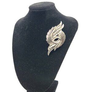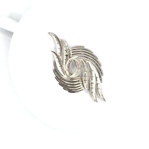 Vintage Crown Trifari Signed Silver Swirl Leaf Brooch 1950s Mid-Century