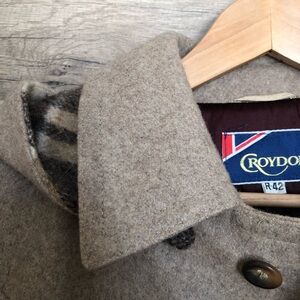 Vintage Croydon Wool Tan and Plaid Lined Duffle Coat Large
