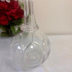 A timeless addition to any bar or vanity, this stunning 32 oz vintage crystal decanter features deep cut detailing, a long faceted neck, and a brilliant multi-faceted stopper. Its globe-shaped base sparkles in the light, creating a beautiful centerpiece whether empty or filled with your favourite spirit. Elegant, classic, and functional — this is vintage barware at its finest.