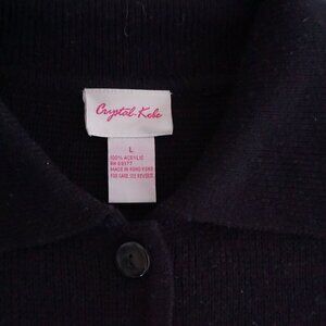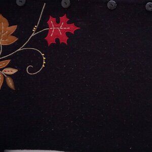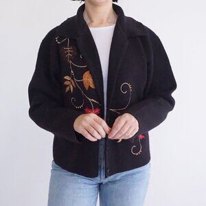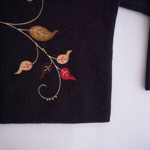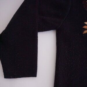 Vintage Crystal Kobe Black Embroidered Harvest Leaves Button Cardigan Sweater L
