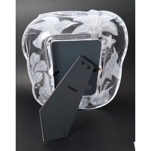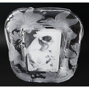 Vintage Crystal Picture Frame Clear Frosted Glass Birds Flowers Tall