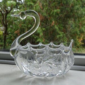Vintage Crystal Swan Dish Czechoslovakia