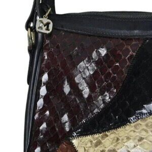 Vintage Cuero Vaca Leather Snakeskin Purse Shoulder Bag Black Patchwork