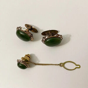 This cufflinks and the tie tack are pre-owned and in used condition. There is some marks and wear on them. Please see all photos for exact items.