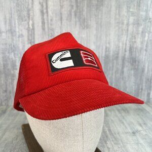 Vintage Cummins Snapback Trucker Hat Cap Corduroy Red Adjustable