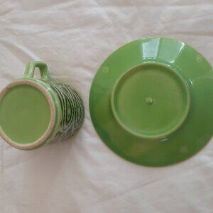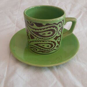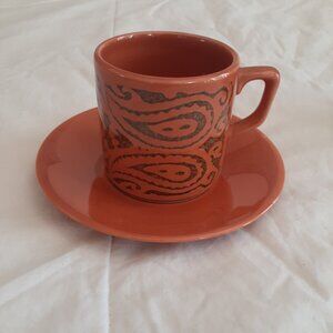 Pre-owned and good condition. I purchased these from a thrift store in Ottawa around 1990 and I always figured that they were from the 60s or 70s. I displayed these in my kitchen for many years, but I simply do not have the space anymore. These cups and saucers are a bit smaller than what is considered normal these days. The cups are about 2.75 inches in height and about 2.5 inches across the top of the cups. The saucers are 5.25 inches in diameter.