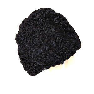 Vintage Curly Lamb Fur Hat Black Winter Garrison Cap XS