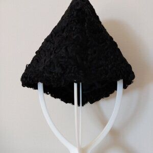 Vintage Black Lambswool Hat - Fur Garrison Cap with Satin Lining